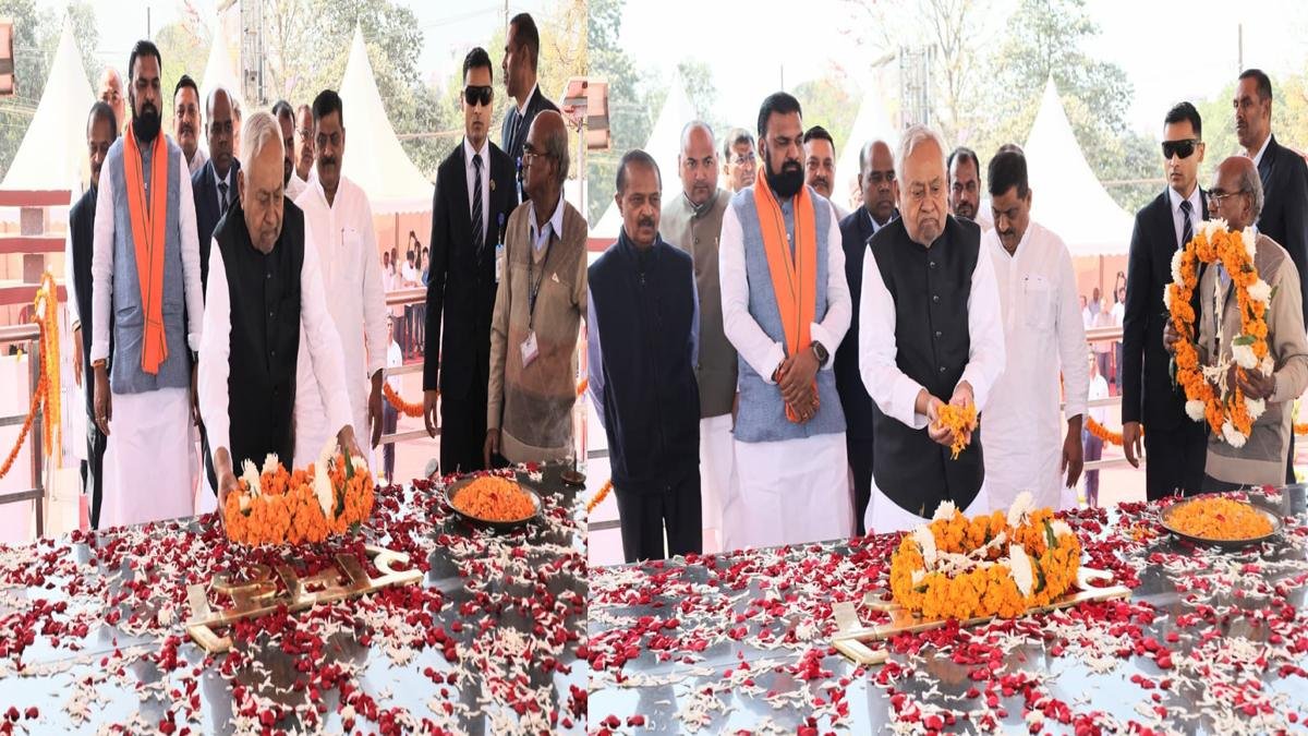 पटना : भारत के प्रथम राष्ट्रपति देशरत्न डॉ. राजेंद्र प्रसाद के 63वें निर्वाण दिवस के अवसर पर उन्हें राष्ट्र ने शत्-शत् नमन किया और उनके व्यक्तित्व एवं कृतित्व को याद कर उन्हें श्रद्धा सुमन अर्पित की। पटना में देशरत्न डॉ. राजेंद्र प्रसाद के 63वें निर्वाण दिवस के अवसर पर मुख्य राजकीय समारोह महाप्रयाण घाट (बांस घाट) स्थित उनके समाधि के निकट आयोजित की गई, जहां मुख्यमंत्री नीतीश कुमार ने देशरत्न की समाधि पर पुष्प-चक्र अर्पित कर भावभीनी श्रद्धांजलि दी। समाधि की परिक्रमा कर उन्हें नमन भी किया। भारत की राष्ट्रपति द्रौपदी मुर्मू की ओर से बिहार लोक भवन सचिवालय के अपर सचिव, उपराष्ट्रपति सीपी राधाकृष्णन की ओर से जिला दंडाधिकारी पटना, भारत के प्रधानमंत्री नरेंद्र मोदी की ओर से आयुक्त पटना प्रमंडल ने देशरत्न डॉ. राजेंद्र प्रसाद की समाधि पर पुष्प-चक्र अर्पित कर श्रद्धांजलि दी।