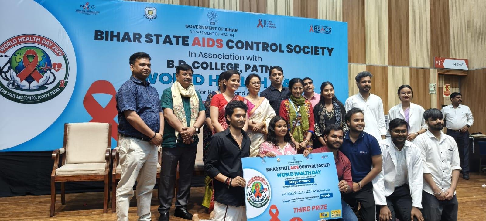 Patna: राष्ट्रीय एड्स नियंत्रण संगठन की ओर से निर्धारित 95:95:99 लक्ष्य की प्राप्ति एवं युवाओं के साथ आम जनों में एचआईवी/एड्स के प्रति जागरुकता बढ़ाने के उद्देश्य से मंगलवार को बापू टॉवर में एक कार्यक्रम का आयोजन किया गया। विश्व स्वास्थ्य दिवस पर बिहार स्टेट एड्स कंट्रोल सोसाइटी की ओर से आयोजित इस कार्यक्रम बीडी कॉलेज, पटना की प्राचार्य, प्रो. रत्ना अमृत मुख्य अतिथि के रूप में मौजूद रहीं।