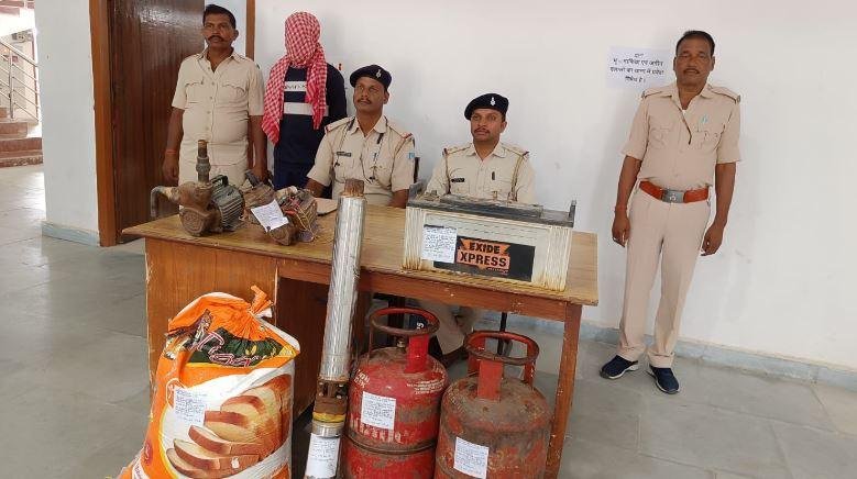बरामद समान में 2 पीस इंडेन कंपनी का घरेलु एलपीजी सिलिंडर, 2 पीस मोटर पप सेट, एक बड़ा बैटरा, एक समर्सेबल शामिल है। बताया गया कि अनुसंधान के क्रम में अभियुक्त ने पूर्व में चोरी की कई घटनाओं में अपनी संलिप्तता स्वीकार कर ली है।