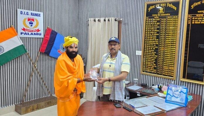 Palamu : भारतवर्ष के महान संत परम पूज्य लक्ष्मी प्रपन्ना जी एवं स्वामीजी महाराज के शिष्य, यगाधीश संत वशिष्ठ नारायण आचार्य ने आज डीआईजी नौशाद आलम से भेंट की। इस दौरान उन्होंने राम जन्मभूमि अयोध्या मंदिर का पवित्र प्रसाद डीआईजी को भेंट किया।