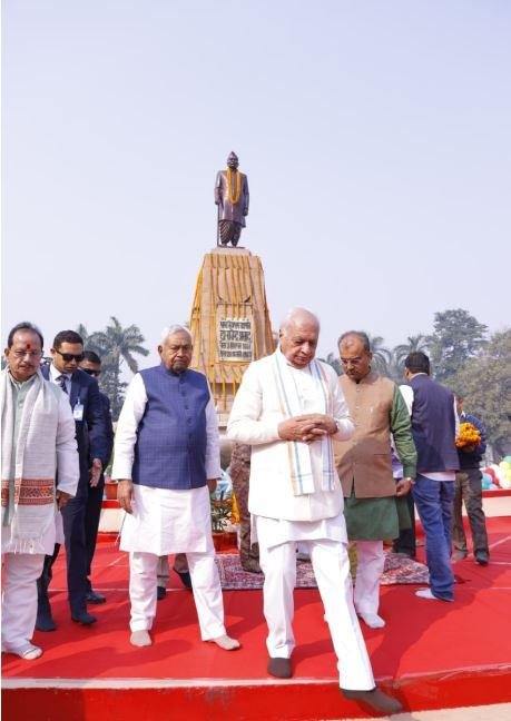 राज्यपाल आरिफ मोहम्मद खान और मुख्यमंत्री नीतीश कुमार ने प्रतिमा पर माल्यार्पण किया.
