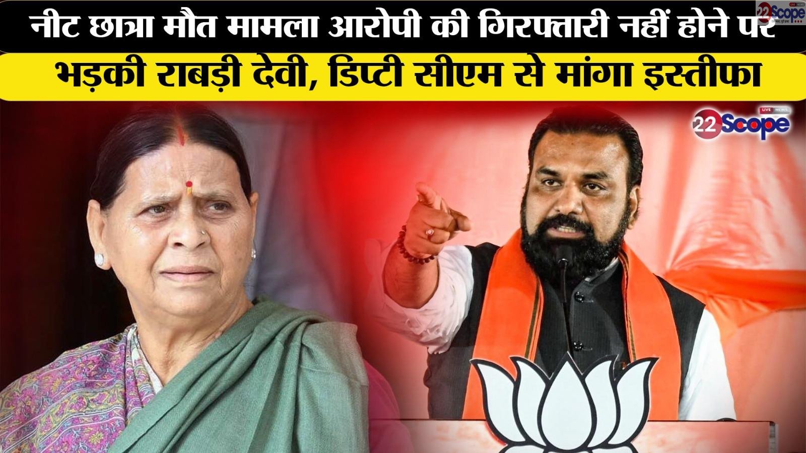 Patna – नीट छात्रा मौत मामला : आरोपी की गिरफ्तारी नहीं होने पर भड़की राबड़ी देवी, डिप्टी सीएम से मांगा इस्तीफा