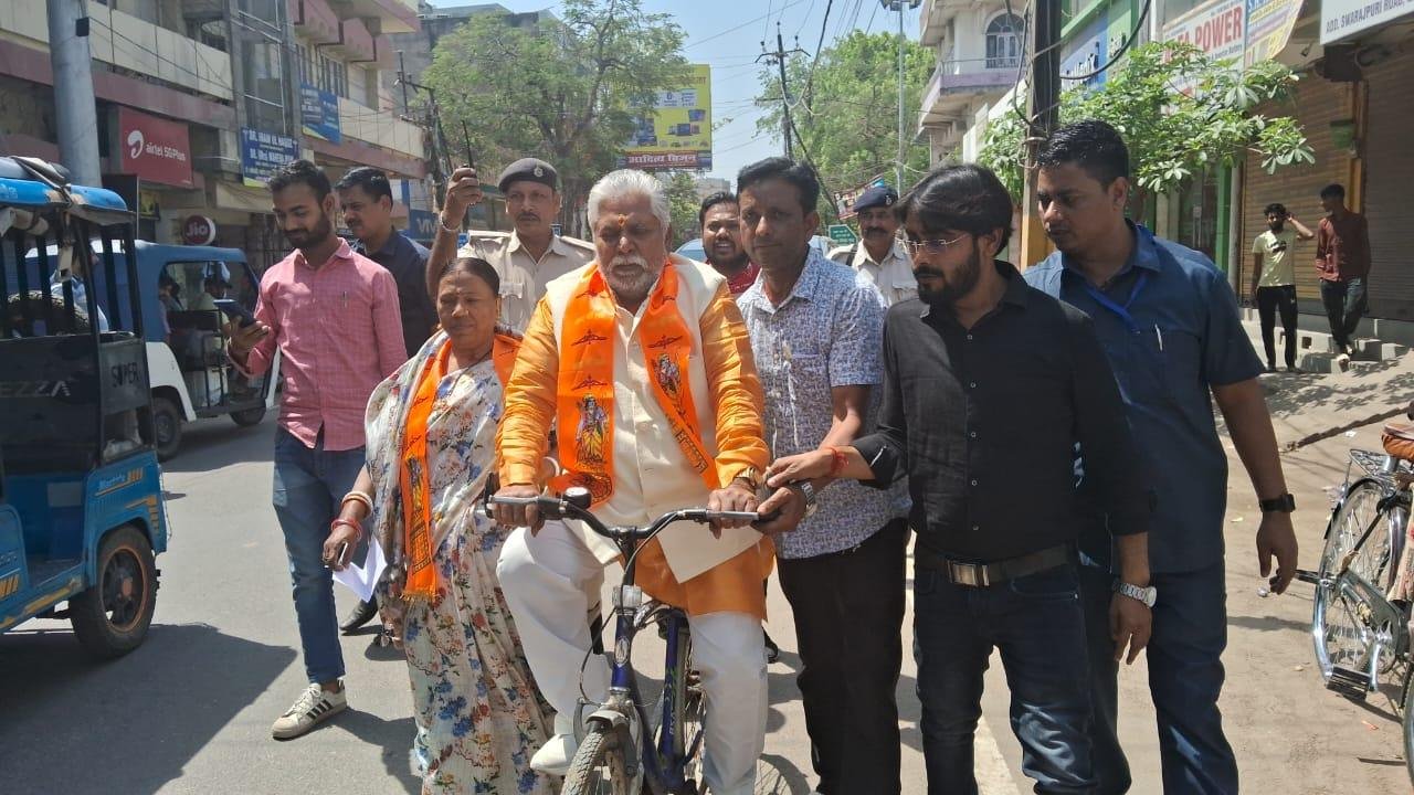 साइकिल से वोट डालने पहुंचे मंत्री जी