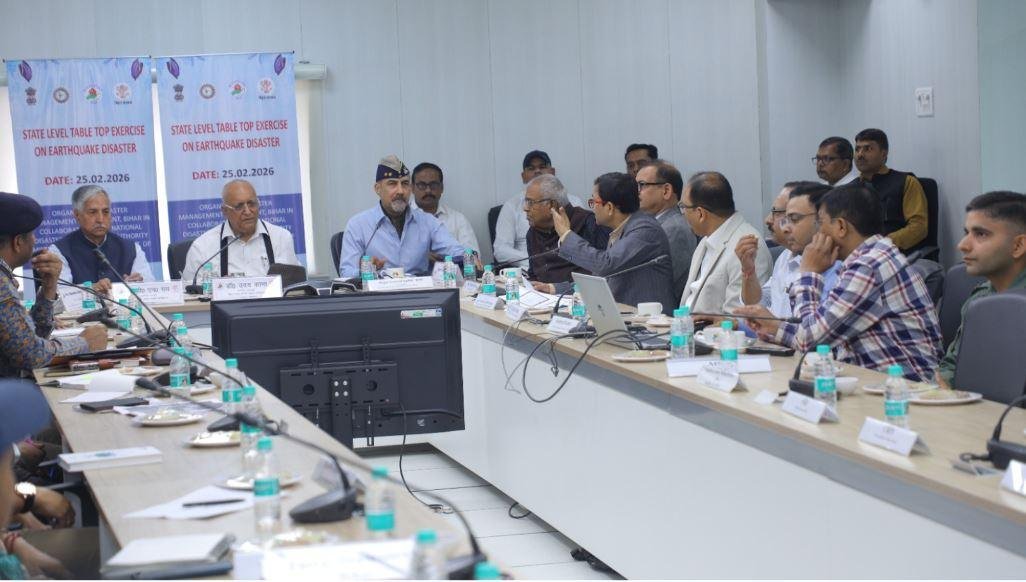 Earthquake Mock Drill पटना: 26 फरवरी 2026 को राज्य के चयनित जिलों में आयोजित होने वाले राज्य स्तरीय भौतिक Earthquake Mock Exercise को सफल बनाने के लिए 25 फरवरी को बिहार राज्य आपदा प्रबंधन प्राधिकरण में Table Top Exercise का आयोजन किया गया। इस अभ्यास का उद्देश्य संभावित भूकंप परिदृश्य में विभागों की तैयारियों, संसाधनों और समन्वय तंत्र की समीक्षा करना था।