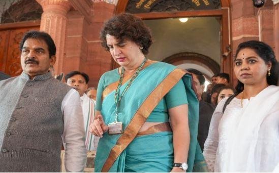 संसद में केंद्रीय गृह मंत्री से मिलकर निकलतीं प्रियंका गांधी वाड्रा।