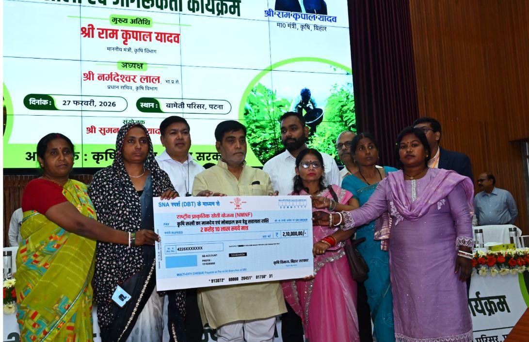 पटना में राज्यस्तरीय कार्यशाला में कृषि मंत्री राम कृपाल यादव ने प्राकृतिक खेती को बढ़ावा देने और किसानों को प्रोत्साहन राशि देने की घोषणा की।