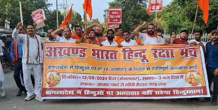 गया: बांग्लादेश में हिंदूओं के खिलाफ अत्याचार के विरोध में गया में अखंड भारत हिंदू रक्षा मंच, इस्कॉन मंदिर और विभिन्न हिंदू संगठनों ने गया में जनाक्रोश मार्च निकाला। जनाक्रोश मार्च गया के आजाद पार्क से निकाला गया। कार्यकर्ताओं ने बांग्लादेश में राजनीतिक परिस्थितियों के दौरान जमायत-ए-इस्लामिक कट्टरपंथियों के द्वारा हिंदूओं के ऊपर अत्याचार, नर संहार, बलात्कार, धार्मिक स्थलों और हिंदूओं के घरों में आगजनी आदि के विरोध में मार्च निकाला।