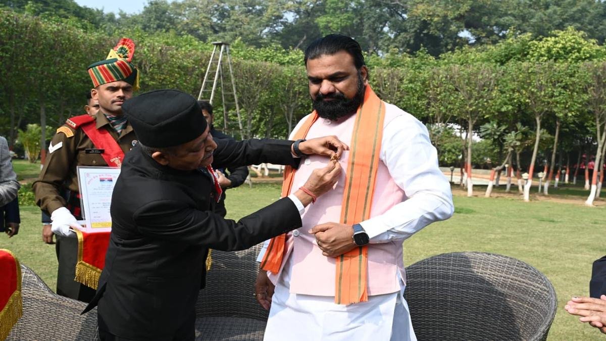 सम्राट चौधरी से निदेशक ब्रिगेडियर मृगेंद्र कुमार ने मुलाकात कर सशस्त्र सेना झंडा दिवस का फ्लैग पिन किया