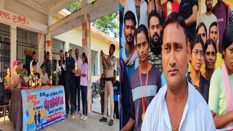बिहार दिवस के अवसर पर छात्र-छात्राओं एवं आमलोगों के स्वास्थ्य एवं खेल के प्रति जागरूक करने के उद्देश्य से इंटर विद्यालय के प्रभारी प्रधानाध्यापक संजय कुमार तरुण एवं कमांडो फिजिकल एकेडमी के सीआरपीएफ चंदन कुमार सिंह के योगदान को लोगों ने खूब प्रशंसा की। इस दौड़ प्रतियोगिता में रजौली एवं आसपास के क्षेत्रों के दर्जनों छात्र-छात्राओं ने उत्साहित होकर भाग लिया। दौड़ प्रतियोगिता का विधिवत उद्घाटन एसडीपीओ एवं आयोजक द्वारा संयुक्त रूप से फीता काटकर किया गया। दौड़ प्रतियोगिता में छात्रों के लिए 1600 मीटर एवं छात्राओं के लिए 800 मीटर की दूरी निर्धारित रही। इस दौरान सर्वप्रथम छात्राओं ने इंटर विद्यालय के मैदान में दो चक्कर में 800 मीटर की दौड़ पूरी की। छात्राओं में कमांडो फिजिकल ट्रेनिंग से हरदिया की बासु कुमारी ने प्रथम स्थान, घसियाडीह की शिल्पी कुमारी ने द्वितीय स्थान एवं ग़ैरिबा की काजल कुमारी ने तृतीय स्थान प्राप्त की।