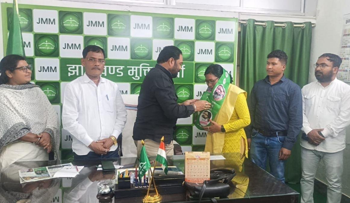 Simdega : झारखंड मुक्ति मोर्चा के केंद्रीय कार्यालय रांची में केंद्रीय महासचिव विनोद कुमार पांडे के उपस्थिति में सिमडेगा जिला परिषद अध्यक्ष रोस प्रतिमा सोरेंग ने झारखंड मुक्ति मोर्चा का दामन थामा। पार्टी के महासचिव ने पार्टी का पट्टा से सम्मानित कर पार्टी में शामिल किया।