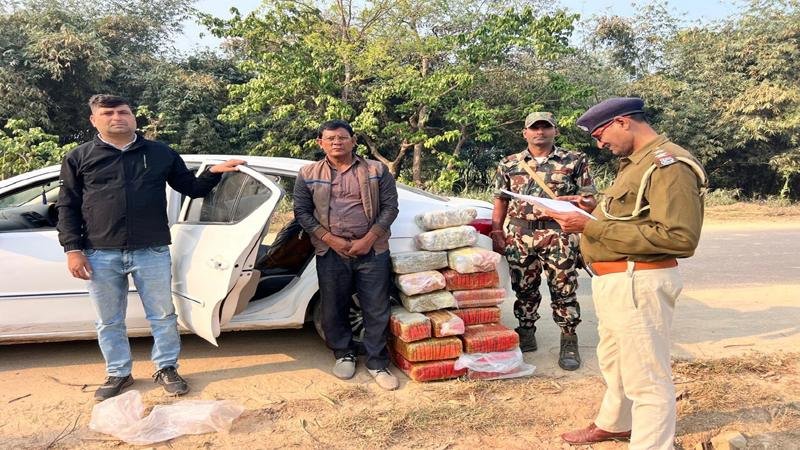 मोतिहारी : मोतिहारी पुलिस ने गुप्त सूचना के आधार पर नेपाल के बड़े गांजा तस्कर को लग्जरी कार से 15 लाख रुपए और गांजा समेत पकड़ा है। पुलिस को यह सूचना मिली थी कि नेपाल का बड़ा गांजा तस्कर नेपाली नंबर लग्जरी गाड़ी से लागभग 70 किलो गांजा की खेप नेपाल से लाकर डिलीवरी करने वाला है। जिसके बाद पुलिस एक्टिव हुई और हरपुर थाना के विभिन्न इलाकों में घराबंदी की। सैनिक रोड में भागने के क्रम में पुलिस ने तस्कर को धर दबोच लिया। जिसकी पहचान नेपाल के परसा जिले के अर्जुन सिंह के रूप में की गई है। पुलिस को इस तस्कर की काफी दिनों से तलाश कर रही थी।