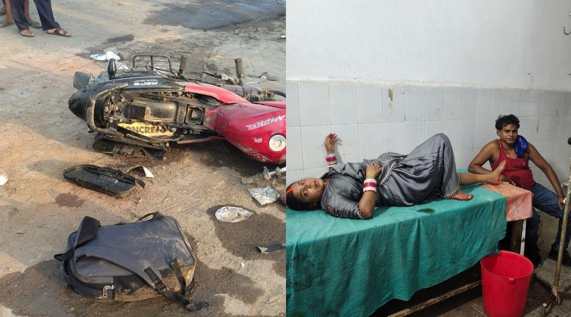 नवादा: नवादा में दो बाइक के टक्कर में एक दंपत्ति बुरी तरह से जख्मी हो गये जिन्हें इलाज के लिए अस्पताल में भर्ती कराया गया है। घटना नवादा के रजौली थाना क्षेत्र के सिमरकोल मोड़ के समीप की है। घायल की पहचान रजौली थाना क्षेत्र के जगजीवनगर मोहल्ले के चमरटोली निवासी मुन्ना दास उर्फ़ मुन्ना मिस्त्री और उसकी पत्नी रीना देवी के रूप में की गई। वहीं दूसरा बाइक सवार शराब तस्कर बताया जा रहा है। मिली जानकारी के अनुसार घटना के बाद दूसरे पर बाइक सवार युवक के पास दो बैग में रखी शराब सड़क पर गिर गई जिसके बाद शराब तस्कर बाइक और शराब वहीं छोड़ कर भाग निकला।
