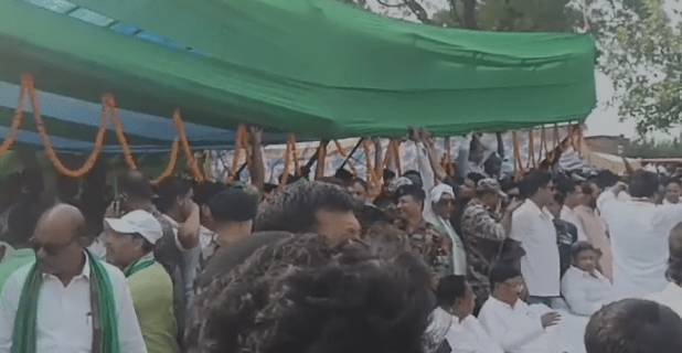 साहेबगंज. खबर साहेबगंज से है। हेमलाल मुर्मू के भाषण के दौरान मंच गिर गया है। इससे वहां अफरा-तफरी मच गयी। हालांकि इस दौरान कोई नुकसान नहीं हुआ। वहीं इस वजह से जमीन पर मुख्यमंत्री चंपाई सोरेन और कल्पना सोरेन को सभा करनी पड़ी।