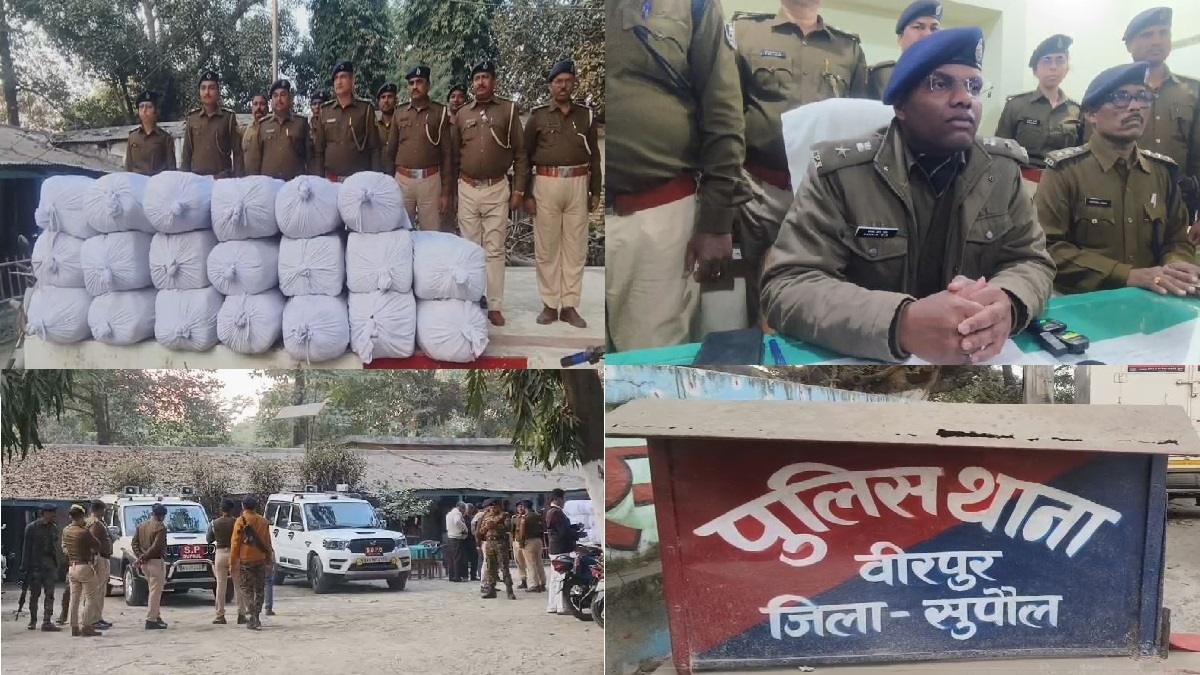 सुपौल पुलिस अधीक्षक सरथ आर एस ने सीमावर्ती थाना बीरपुर में पीसी कर मीडिया को बताया कि सुपौल पुलिस ने नशे के खिलाफ एक बड़ी और निर्णायक कार्रवाई की है। गुप्त सूचना पर सुपौल पुलिस ने गांजा तस्करी के एक बड़े नेटवर्क का भंडाफोड़ करते अंतर्राष्ट्रीय सीमावर्ती बीरपुर क्षेत्र के शुभंकरपुर गांव के मक्का खेत से 620 किलोग्राम अवैध गांजा बरामद किया है। सुपौल पुलिस ने 11 जनवरी को भी 451.00 किलोग्राम गांजा पकड़ने में सफलता हासिल किया था।