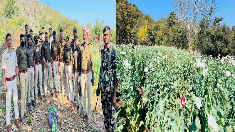 कई एकड़ भूमि पर लगी अवैध अफीम की फसल को किया नष्ट