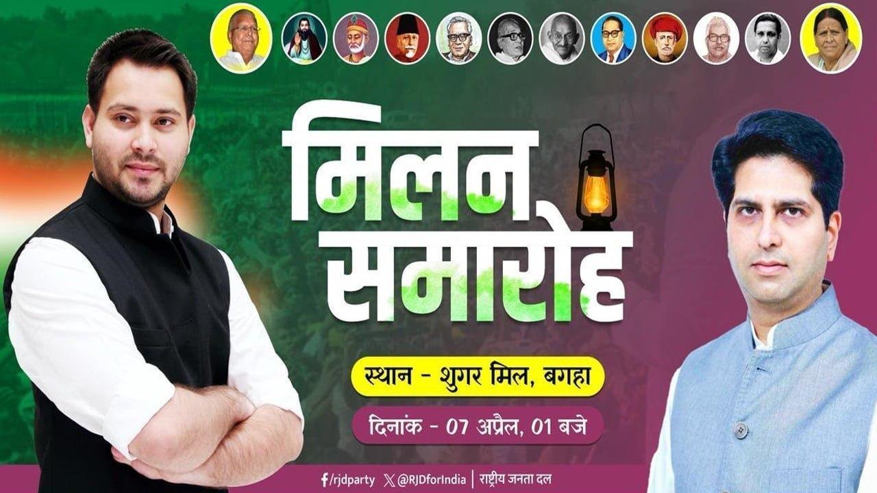 बगहा : लोकसभा चुनाव के बीच बिहार में विपक्ष के नेता व पूर्व डिप्टी सीएम तेजस्वी यादव कल यानी सात अप्रैल को बगहा पहुंच रहे हैं। उनको आने को लेकर तैयारी पूरी कर ली गई है। साथ ही कल मिलन समारोह का भी आयोजन किया गया है। वहीं तिरुपति शुगर मिल के एमडी दीपक यादव हजारों कार्यकर्ताओं के साथ राजद की सदस्यता लेंगे।