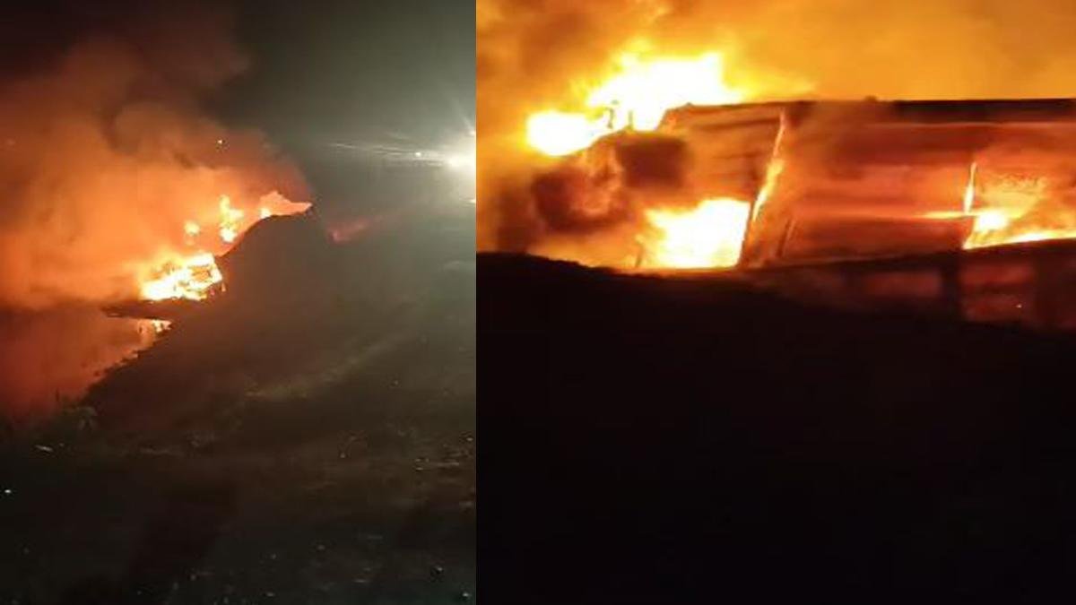 घायल लोगों को ले जा रही एंबुलेंस का हो गया एक्सीडेंट, आग के गोले में तब्दील, सुरक्षित निकले घायल व चालक