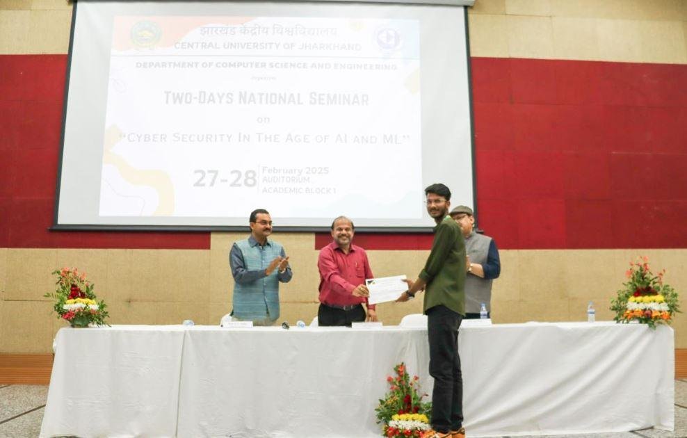 Ranchi : झारखंड केंद्रीय विश्वविद्यालय (CUJ) के कंप्यूटर साइंस एवं इंजीनियरिंग विभाग तथा कंप्यूटर सोसायटी ऑफ़ इंडिया के संयुक्त तत्वाधान में आयोजित दो दिवसीय राष्ट्रीय संगोष्ठी का शुक्रवार को सफल समापन किया गयाl साइबर सुरक्षा पर आधारित इस संगोष्ठी के दूसरे दिन कंप्यूटर साइंस एवं इंजीनियरिंग के विभाग अध्यक्ष प्रोफेसर सुभाष यादव द्वारा मुख्य अतिथि प्रोफेसर सिबा के. उदगाता, स्कूल ऑफ़ कंप्यूटर एंड इनफॉरमेशन साइंसेज यूनिवर्सिटी ऑफ़ हैदराबाद, विशेषज्ञों तथा अतिथियों का स्वागत किया गयाl