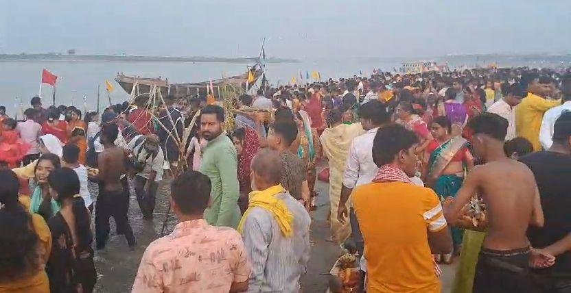 पटना: लोक आस्था का चार दिवसीय महापर्व चैत्र छठ का आज तीसरा दिन है। छठव्रतियों ने अस्ताचलगामी सूर्य को अर्घ्य दिया। सोमवार को उगते सूर्य को अर्घ्य के साथ पर्व का समापन होगा। सूर्य भगवान को अर्घ्य देने के लिए पटना के विभिन्न घाटों समेत बिहार के विभिन्न इलाकों में श्रद्धालुओं और व्रतियों की भारी भीड़ उमड़ी।