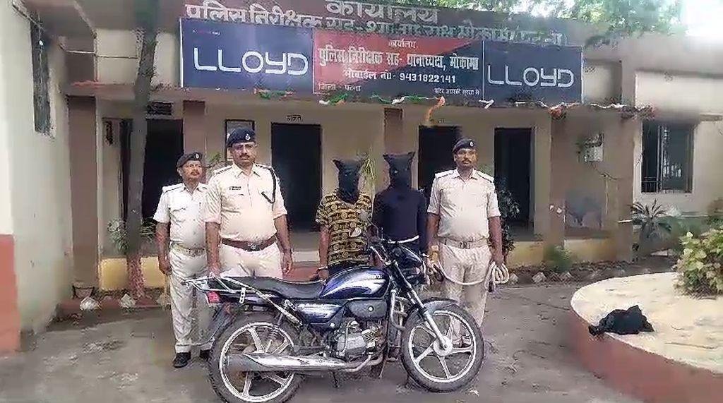 पटना: पटना के मोकामा में पुलिस ने बाइक चोरी करने के महज डेढ़ घंटे के अंदर दो बाइक चोर को चोरी की बाइक के साथ गिरफ्तार कर लिया। दोनों चोर चोरी का बाइक बेचने की फ़िराक में थे तभी पुलिस ने दोनों को दबोच लिया। थानाध्यक्ष महेश्वर प्रसाद राय ने बताया कि सीआरपीएफ में तैनात जवान शैलेन्द्र कुमार का बाइक चोरों ने रेलवे कॉलोनी से चोरी कर ली।