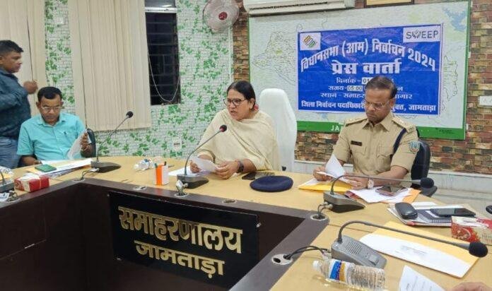 Jamtara : जिला निर्वाचन पदाधिकारी सह डीसी कुमुद सहाय ने विधानसभा चुनाव को लेकर नाम वापसी के उपरांत जिले के प्रिंट एवं इलेक्ट्रॉनिक मीडिया के साथ प्रेस वार्ता कर निर्वाचन कार्यक्रम के संबंध में जानकारी दी गई। जिले के 08 नाला एवं 09 जामताड़ा विधानसभा क्षेत्र में 22 अक्टूबर से 29 अक्टूबर तक नामांकन, 30 अक्टूबर को नामांकन प्रपत्रों की संवीक्षा एवं शुक्रवार 01 नवंबर को नाम वापसी संबंधित जानकारी दी।