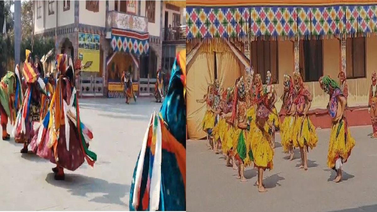 बौद्ध भिक्षुओं और लामाओं ने रंग-बिरंगे परिधानों और वाद्य यंत्रों की मधुर धुनों पर नृत्य करते नजर आए