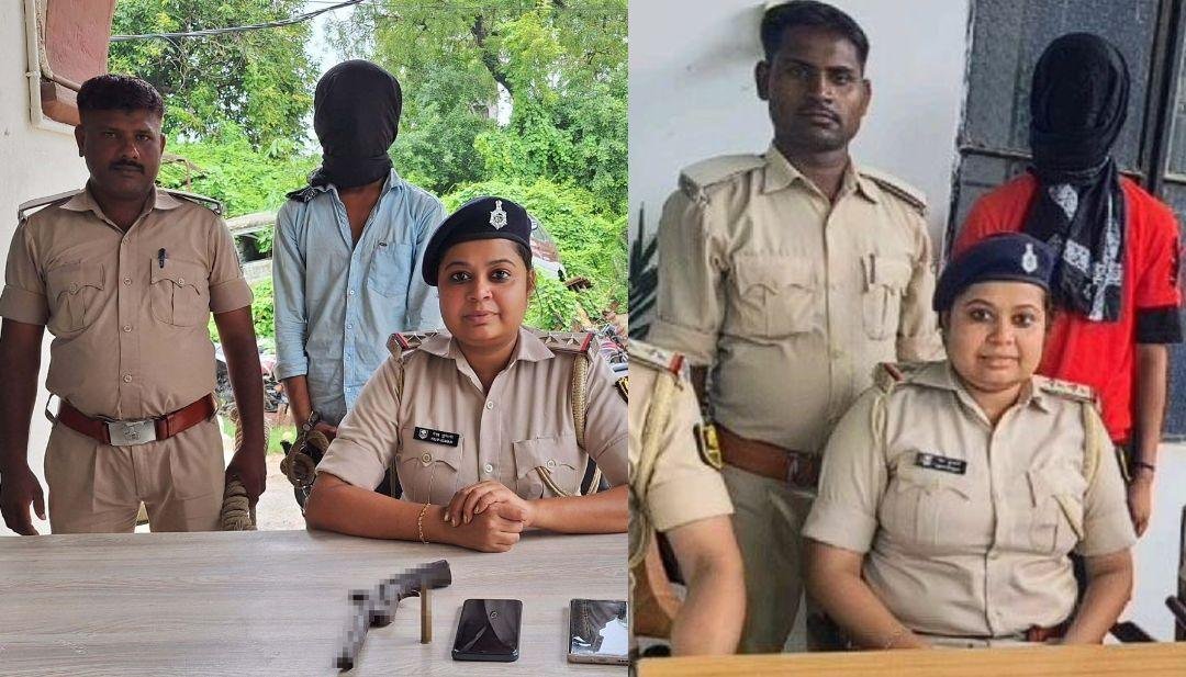 गोपालगंज: गोपालगंज पुलिस ने हथियार के साथ सोशल मीडिया पर वायरल वीडियो के आधार पर दो युवकों को गिरफ्तार किया है। पुलिस ने गिरफ्तार दोनो युवकों के पास से दो रिवाल्वर, तीन जिंदा कारतूस और 08 मोबाइल भी बरामद किया है। गिरफ्तार दोनो युवक की पहचान शिवम मिश्रा और बलिराम सोनी के रूप में की गई। मीरगंज थाना क्षेत्र के नरयिनिया गांव निवासी अर्जुन मिश्रा के पुत्र शिवम मिश्रा का एक वीडियो सोशल मीडिया पर खूब वायरल हुआ था जिसमे शिवम मिश्रा और उसके दोस्त चारपहिया गाड़ी में हथियार का प्रदर्शन कर रहे है।
