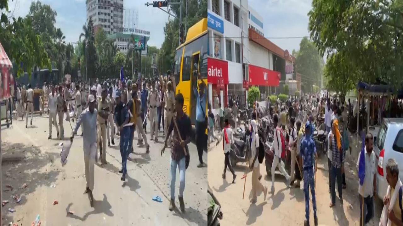 पटना : 12 सूत्री मांगों को लेकर भीम आर्मी के बैनर तले दफादार चौकीदार, होम गार्ड अभ्यर्थी और पासवान समाज के लोग पटना के कारगिल चौक से विधानसभा तक मार्च निकाल रहे थे। जिसे भारी पुलिस बल की मौजूदगी में रोक दिया गया है। पुलिस के साथ नोक-झोंक बैरिकेटिंग तोड़ने का प्रयास किया गया। जिसके प्रशासन ने हल्का बल का प्रयोग कर हटा दिया। प्रदर्शन कर रहे लोगो ने कहा कि हमारी लड़ाई जारी रहेगा। हमारे कार्यकर्ताओं पर लाठीचार्ज हुआ है।